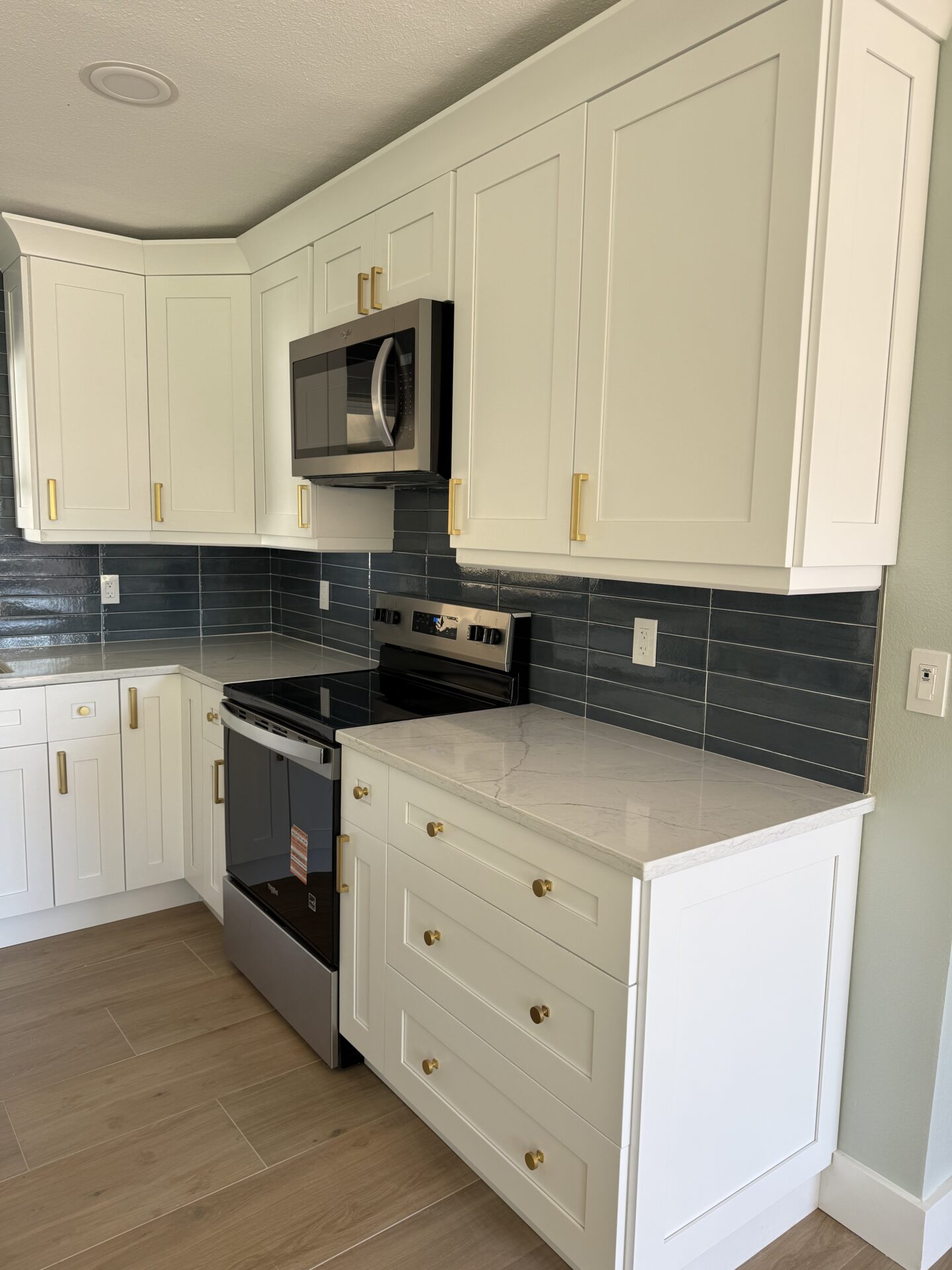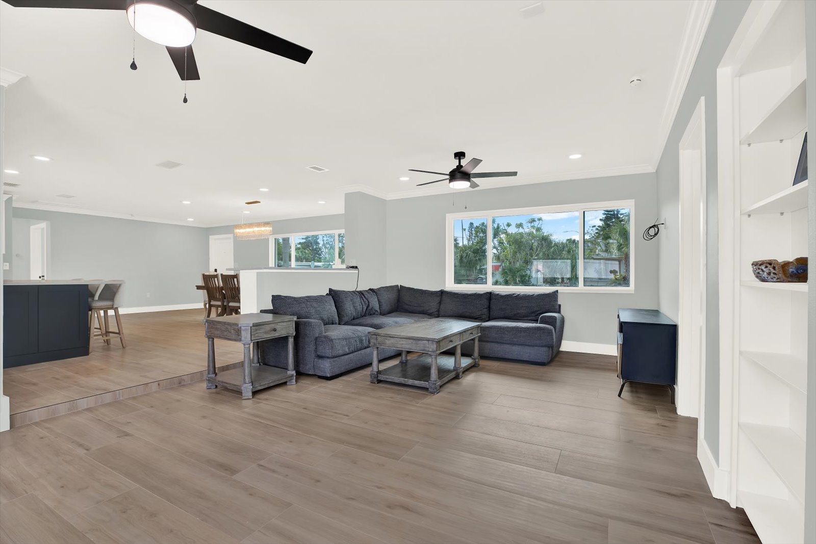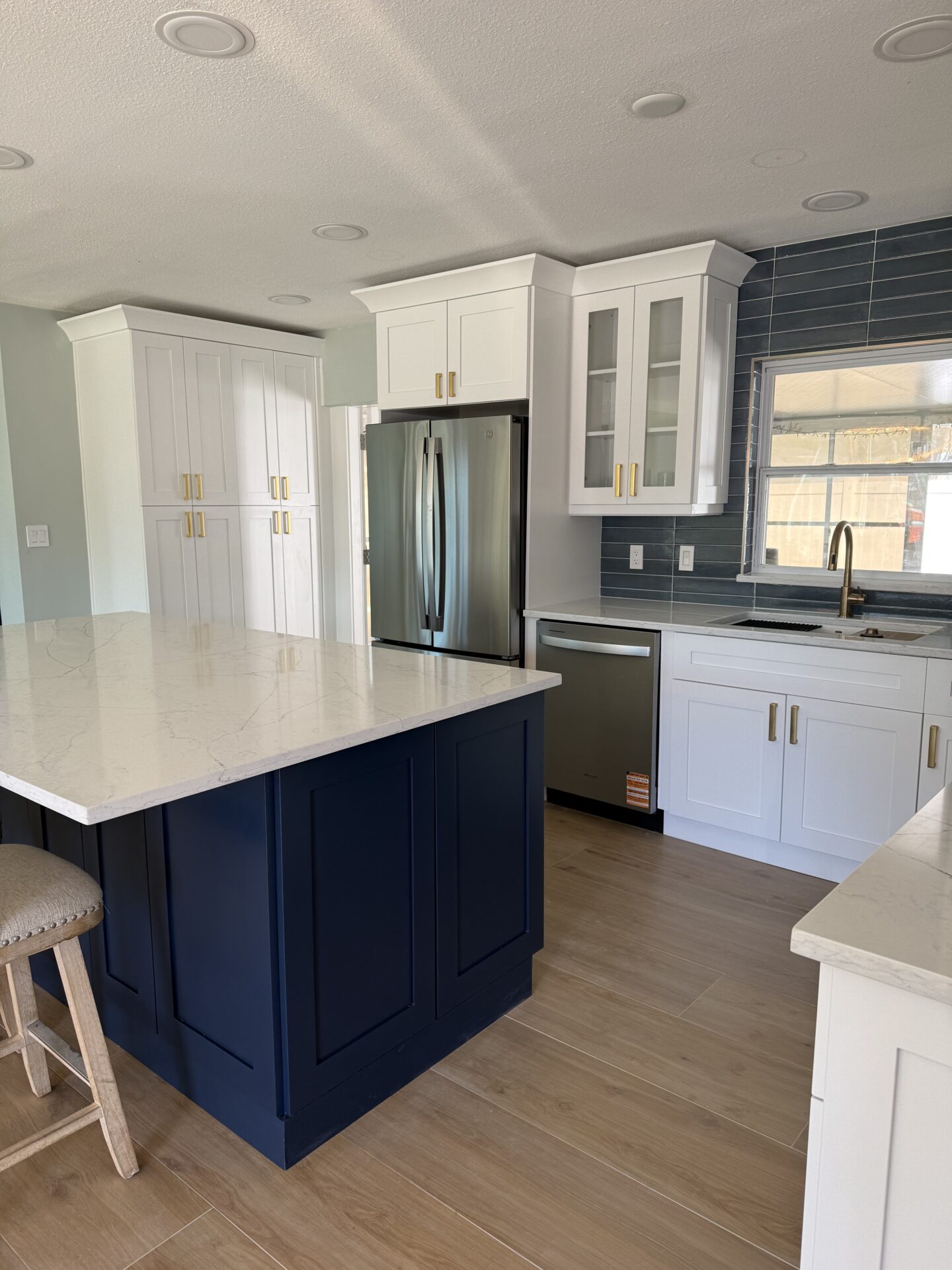 After being Devastated by the Hurricanes of 2024 we had the privilege of renovation a home in St. Pete Beach. We were able to make some great changes creating a bright and "Beachy" Open Floor Plan. The Kitchen is now full of light with White Shaker Cabinets and Navy Blue Island. Both Secondary Bathrooms were made slightly larger and more comfortable with updated tile and cabinetry. Large plank tile flooring was laid throughout.